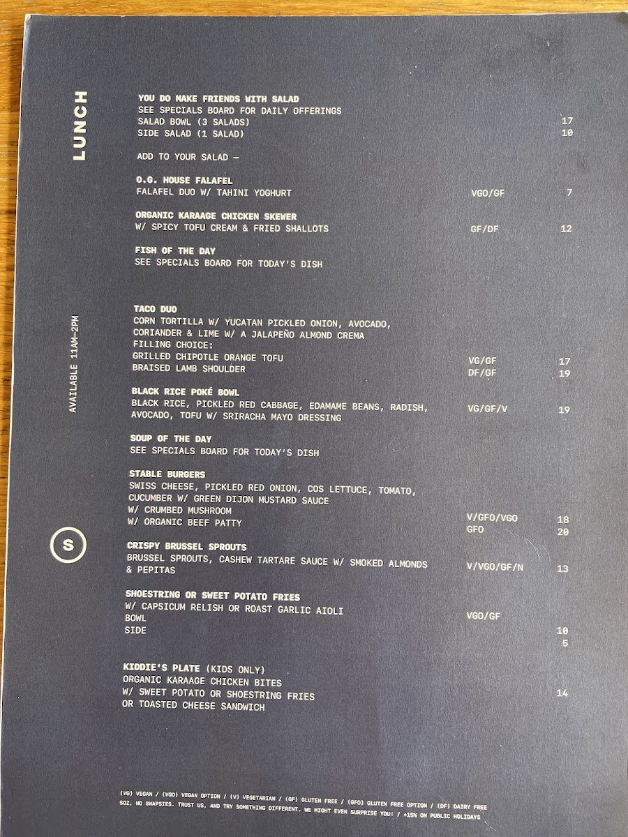 STABLE Menu